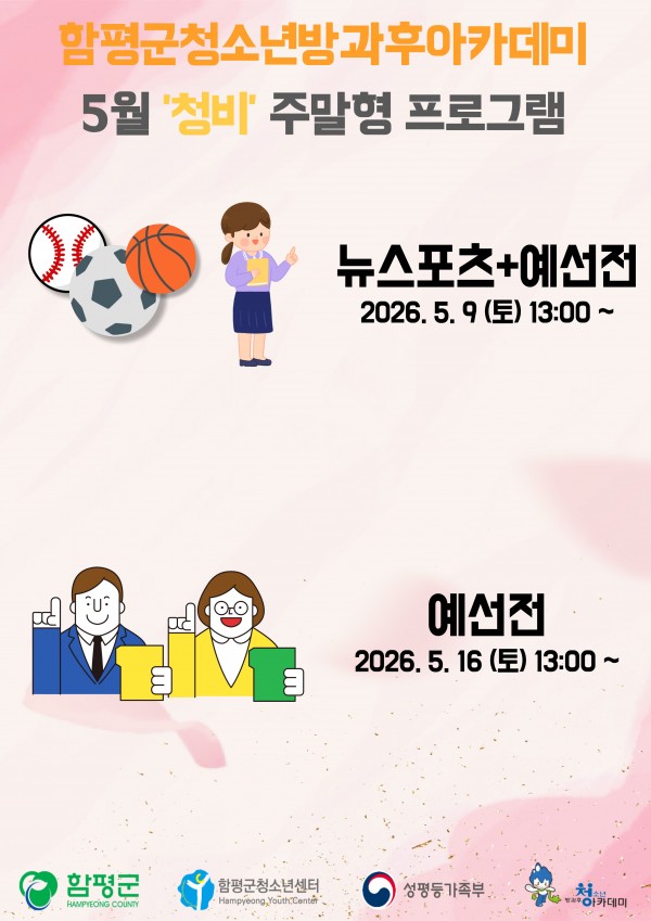 [모집] 함평군청소년센터에서 2026년도 5월에 함께할 청소년방과후아카데미 '청비'를 모집합니다!
